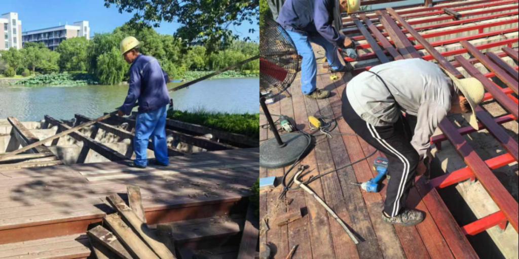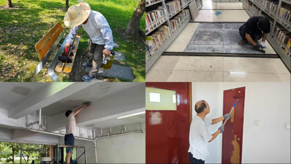 暑假开始后,物业服务中心认真做好毕业生房间的水电检修、家具维修、床具检查等工作;暑假作为修缮黄金期,油漆粉刷、路灯维修、门具维修、阀门更换、修漏防水、地面砖修复等工作有序开展中,各班组负责人严格按照制定的暑期工作计划,跟进各项工作,确保修缮质量。