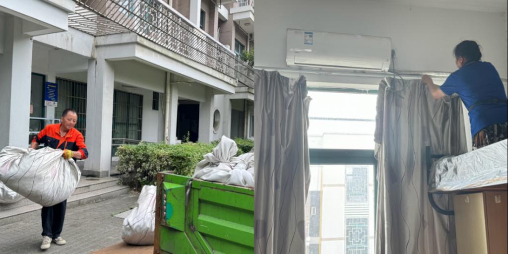 连日的高温,植物缺水现象严重,杂草疯长,物业绿化养护人员不畏酷暑,依然守护在岗位上,做好校园绿化修割、浇水、除草等养护工作,配合工程组做好树木移植,清理马鞭草花海,场地种植前期准备工作。保洁人员认真做好办公区域、学生暑期自习教室等区域的卫生,及时清运垃圾、毕业生房间窗帘清洗工作,致力于为师生营造整洁、卫生的校园环境。