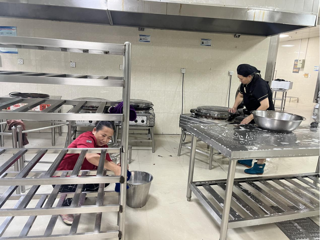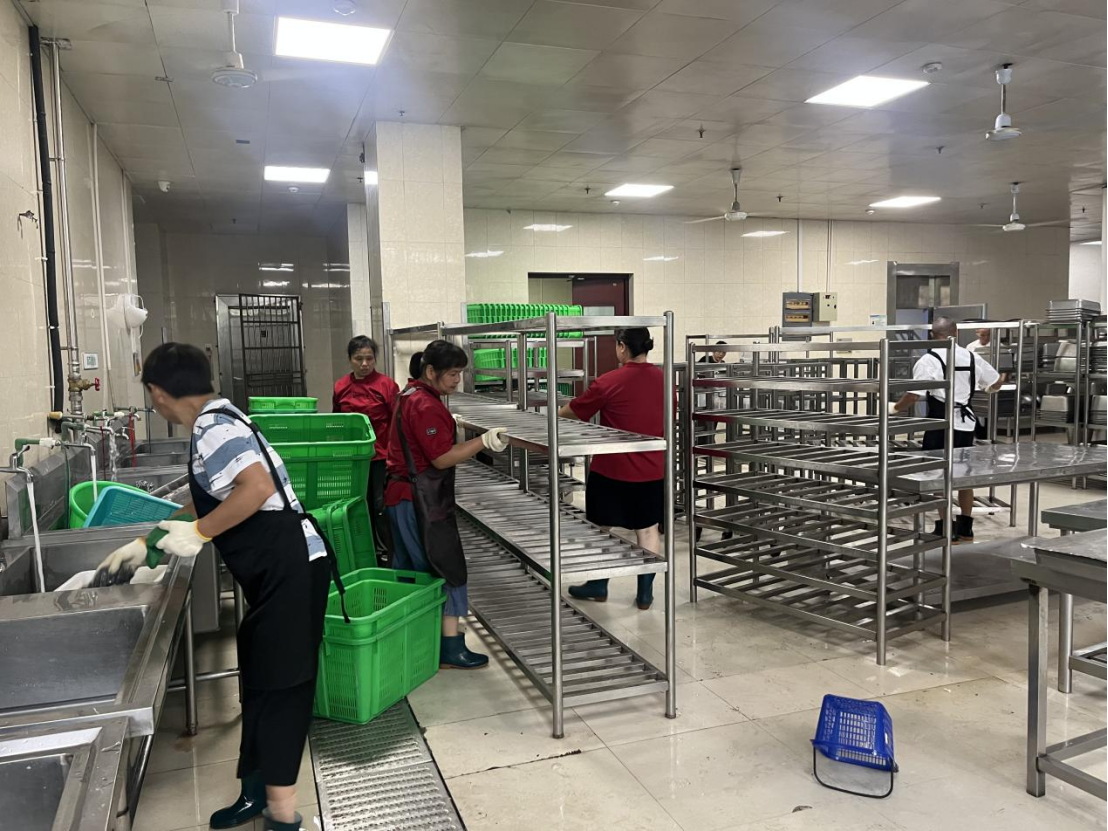 8月27—28日,中心所有员工提前返岗开展大扫除,操作区、洗碗间、大厅……每个区域的每个角落、每样用具都不放过,确保新学期备餐环境干净整洁、用餐区域宽敞明亮。