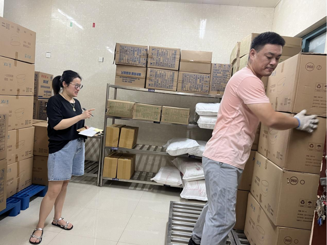 8月中下旬,中心原材料陆续入库,中心监控小组及时前往仓库对原材料进行查看,确保所有原材料日期新鲜无过期。
