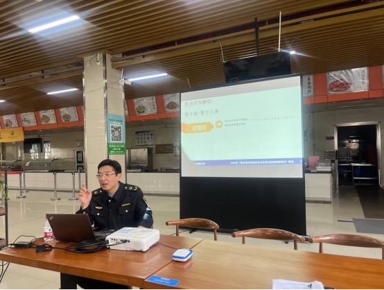 为切实抓好秋冬季校园食品安全工作,进一步提高校园餐饮从业人员的食品安全风险与责任意识,饮食服务中心于11月13日组织了一次面向全体员工及合作单位参与的秋冬季食品安全专题培训。此次培训特别邀请到了海宁市市场监督管理局长安分局的副局长胡宏宇先生作为主讲嘉宾。