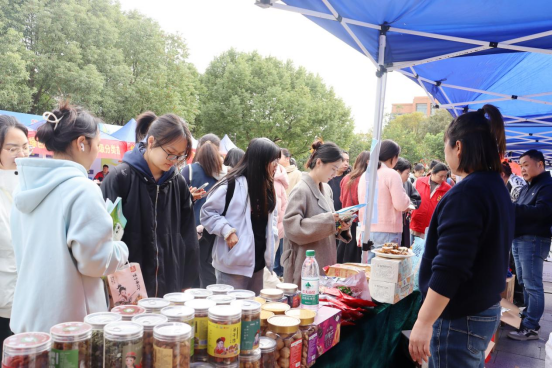 特色购物区同样精彩纷呈。新疆风味的农产品吸引了众多师生的目光,从肉厚核小、甘甜可口的和田大枣到鲜艳脆甜、汁多味美的阿克苏苹果,每一种都是大自然的馈赠。现场提供的免费试吃让师生们赞不绝口,优惠的价格更是让人心动。此外,临安山核桃、大颗粒葵花籽、多种饮料和零食的集结,让师生们享受到了一站式的购物体验。
