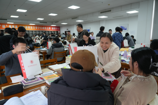 在图书馆内,准备考研的同学们正埋头苦读,争分夺秒地复习。当收到这份意外的惊喜时,他们的脸上都露出了惊喜与感动的笑容。一位正在复习的同学表示:“非常感谢学校对我们的关心与支持,这份定胜糕不仅让我们感受到了温暖,更坚定了我们考研的信心与决心。”