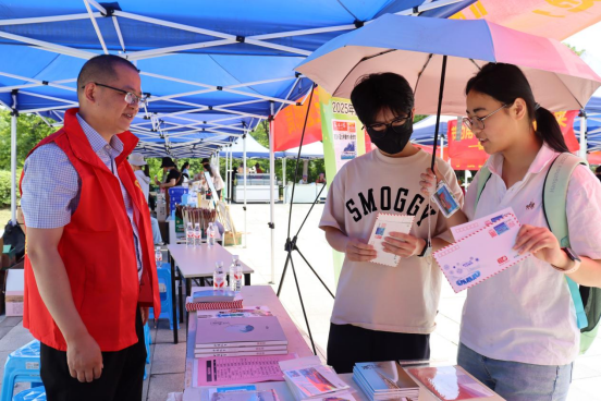 除了丰富的环保主题活动,现场还设置了便民服务区。绿植、邮品展销吸引了不少“生活达人”,免费配钥匙、免费配置网线、小家电维修等红色服务驿站也深受学生们喜爱。