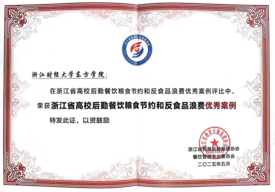 近日,浙江省教育后勤基建协会餐饮管理专业委员会召开二届三次成员代表大会,对浙江省高校后勤餐饮粮食节约和反食品浪费工作进行表彰。我院后勤基建部报送的《多点联动,营造“节约光荣”的校园新“食”尚》案例获评“餐饮粮食节约和反食品浪费——共管共治类”优秀案例。