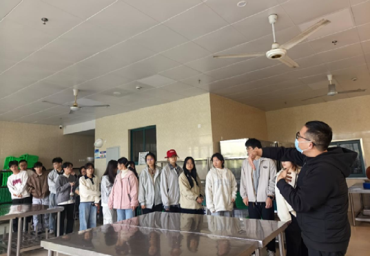 交流环节结束后,在食堂管理人员带领下,学生代表有序走进食堂操作区域。从蔬菜清洗切配区、烹饪区到餐具消毒间,同学们近距离察看卫生状况、设备运行情况与操作流程。在智能留样仪前,工作人员详细讲解食品留样的规范要求,包括留样时间、分量、储存条件等,令大家对校园餐饮的安全保障有了直观认知。参观过程中,学生代表不时驻足询问,工作人员一一耐心解答,让学生更深入了解食堂。