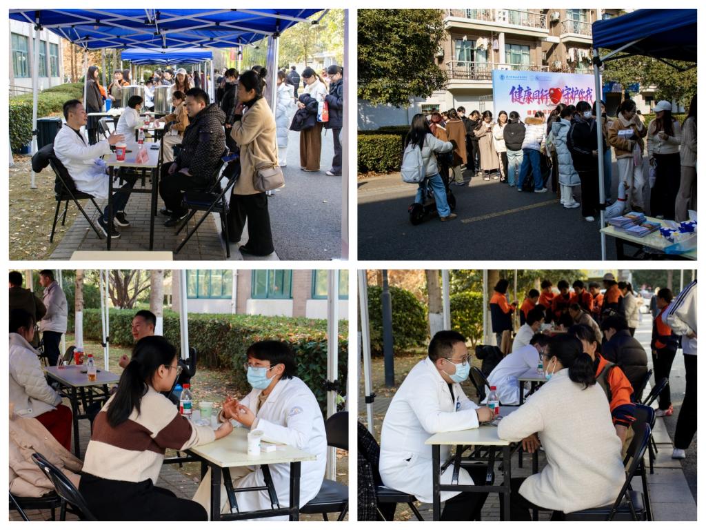 义诊活动现场气氛热烈,吸引众多师生与周边居民前来参与。海宁市中心医院派出的专家团队为到场人员提供面对面的健康咨询和专业指导,内容涵盖中医调理、口腔健康、科学运动等多个领域。专家们耐心解答疑问,细致提供建议,并现场开展了部分基础检查服务,让师生与居民近距离感受到了便捷、专业、有温度的健康关怀。