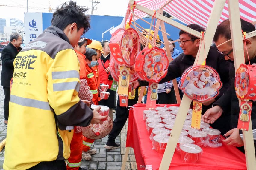 恰逢元宵佳节,后勤基建部党支部精心准备了热气腾腾的汤圆,现场分发给村民和户外劳动者。一碗碗香甜软糯的汤圆,不仅传递着团圆美满的节日祝福,更传递着校地党组织对基层群众、一线劳动者的真切关怀,让大家在温馨祥和的氛围中感受党组织的温暖与牵挂。
