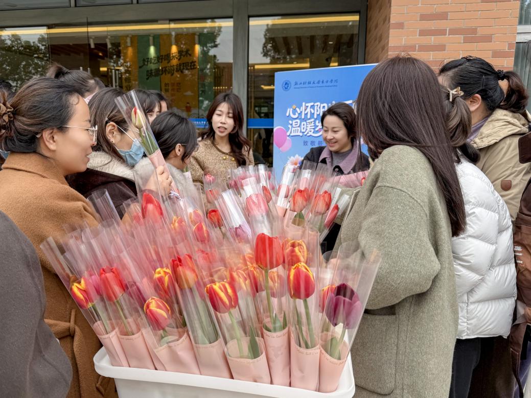 3月5日中午,后勤饮食服务中心精心熬制养颜汤,在午餐时段向全院女性师生免费派送。一碗碗热气腾腾的汤品,传递着节日的关怀与祝福,让大家在忙碌的学习工作之余感受到温暖。与此同时,后勤物业服务中心同步开展赠花活动,将物业亲手培育的郁金香赠予全院女教职工。鲜花寓意美好,承载着对大家的诚挚祝愿,为春日校园增添了一抹亮色。