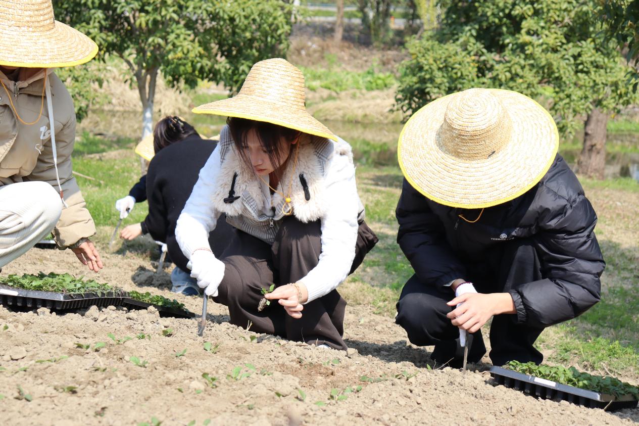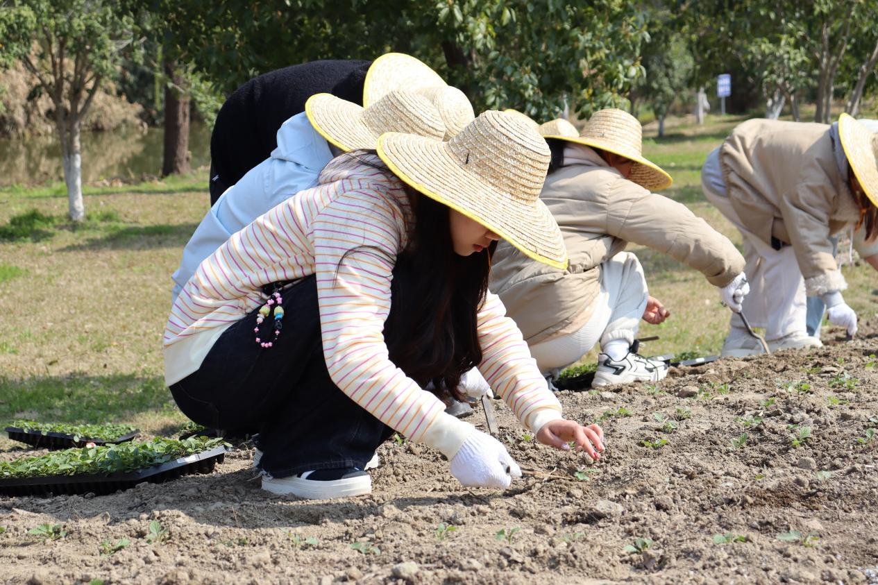 除了果树种植,近五十名学生代表还齐聚校园花海种植区,开展马鞭草、百日草花苗栽种活动。同学们三两合作,以蓬勃朝气投身种植工作,挖坑、放苗、覆土、浇水,每一个步骤都认真细致。据介绍,待盛夏时节,这片区域将形成紫色与金色交织的绚烂花海,成为师生休闲打卡的“校园后花园”,进一步丰富校园季象景观。