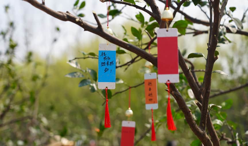 栽种完成后,师生们纷纷拿起祝福牌,写下对校园、对青春、对未来的美好祝愿。五彩斑斓的祝福牌随风轻扬,与嫩绿枝叶相映成趣,承载着师生对校园发展的殷切期盼,也寄托着福果盈枝、前程似锦的美好愿景。