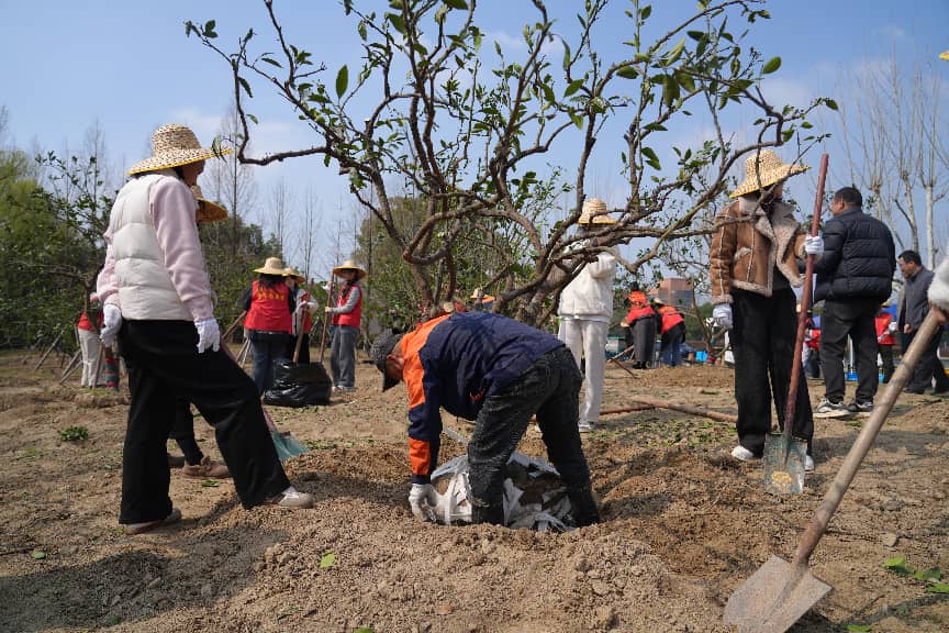 活动现场,在工作人员的现场指导下,师生们认真学习“三埋两踩一提苗”的种植技巧,随后三五成组,扶苗正干、挥锹培土、执桶浇水,现场一派热火朝天的劳动景象。经过共同努力,30棵蜜橘树稳稳扎根于校园沃土,迎风挺立,为校园增添了一片新绿。