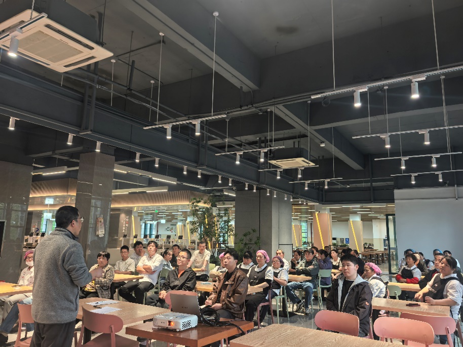 为切实加强春夏季食品安全管理,有效防范各类食品安全风险,全面提升餐饮服务从业人员食品安全责任意识与操作规范水平,4月16日,后勤基建部饮食服务中心组织开展春夏季食品安全防控专项培训,中心全体员工及各合作单位代表共同参与。