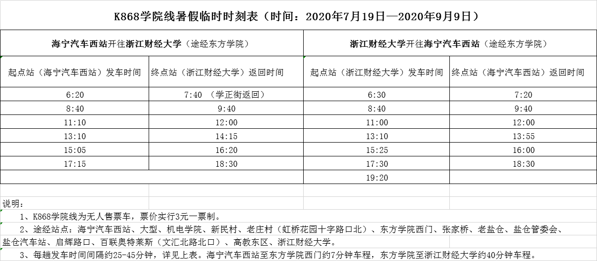 上一篇:公交K868学院线(海宁汽车西站←→浙江财经大学)发车时刻表