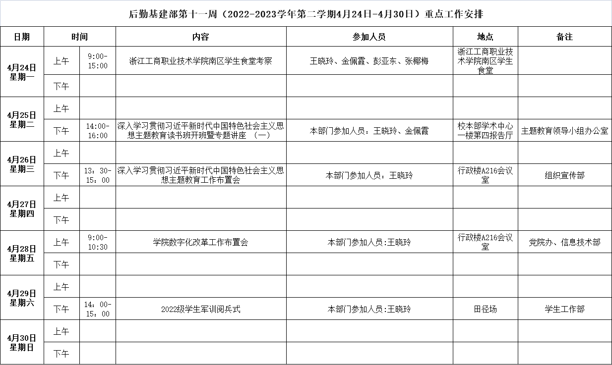 上一篇:后勤基建部第十二周(2022-2023学年第二学期5月1日-5月7日)重点工作安排