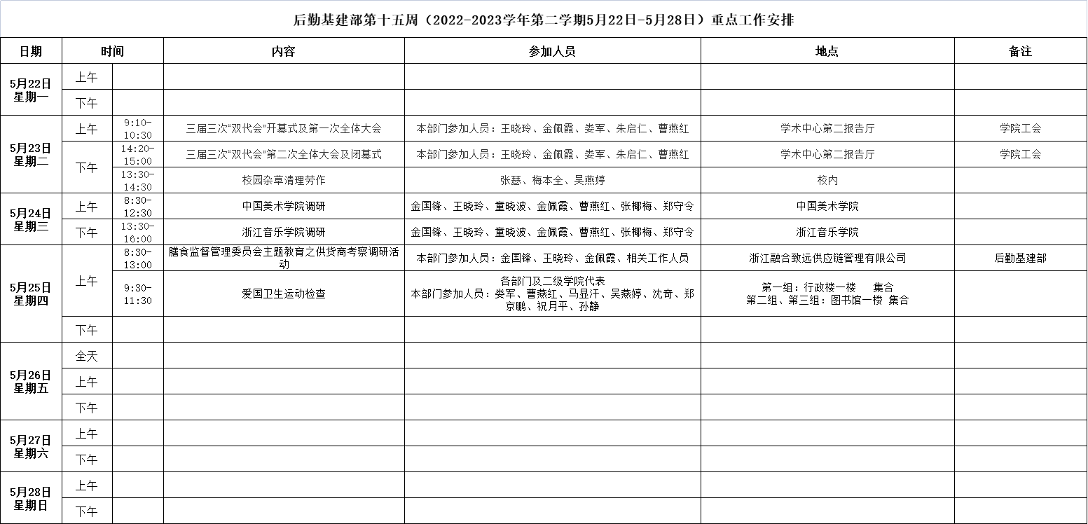 下一篇:后勤基建部第十四周(2022-2023学年第二学期5月15日-5月21日)重点工作安排