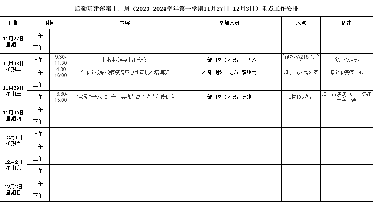下一篇:后勤基建部第十一周(2023-2024学年第一学期11月20日-11月26日)重点工作安排