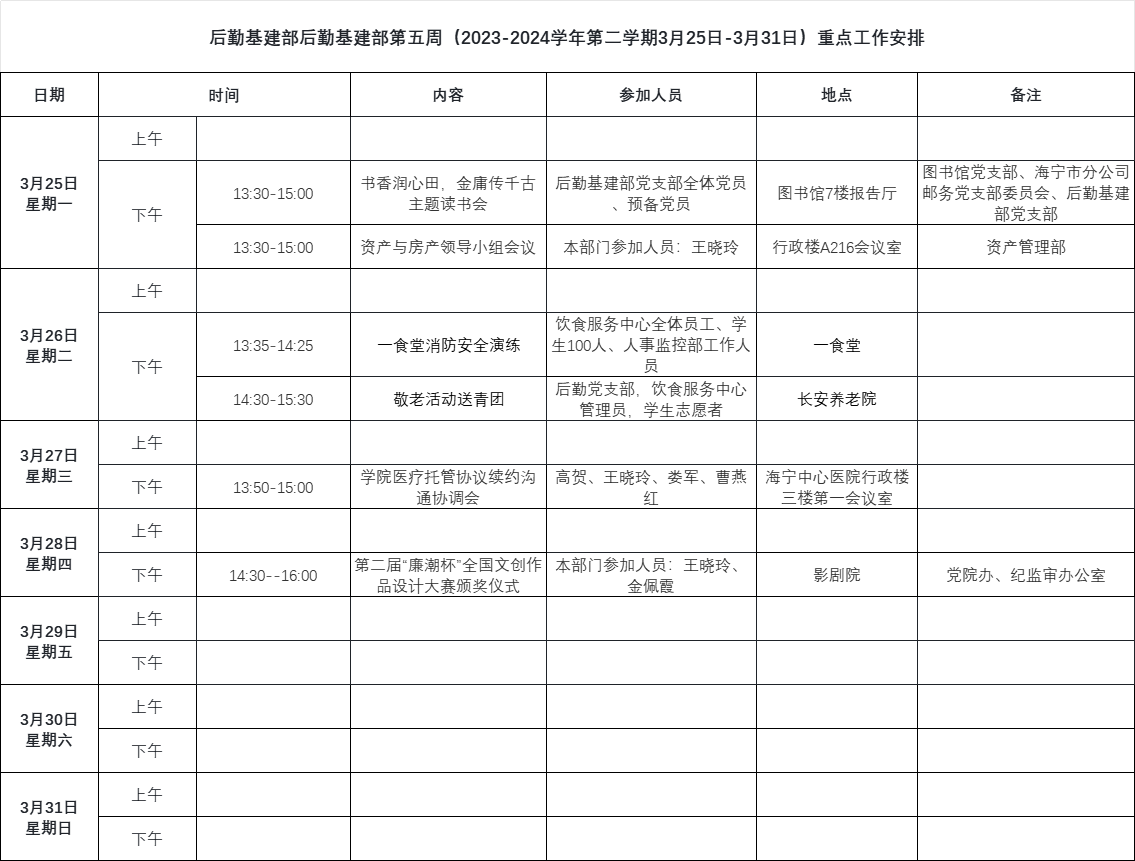 下一篇:后勤基建部后勤基建部第四周(2023-2024学年第二学期3月18日-3月24日)重点工作安排