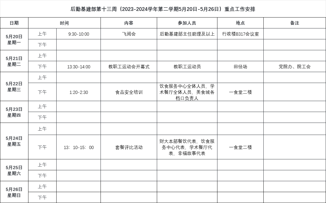 上一篇:后勤基建部第十四周(2023-2024学年第二学期5月27日-6月2日)重点工作安排