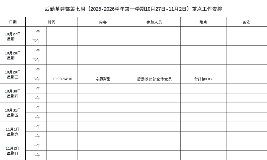 下一篇:后勤基建部第六周(2025-2026学年第一学期10月20日-10月26日)重点工作安排