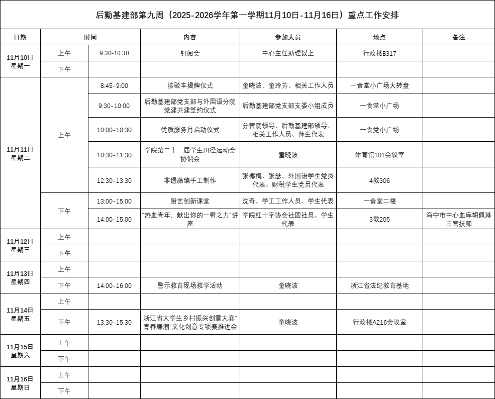 上一篇:后勤基建部第十周(2025-2026学年第一学期11月17日-11月23日)重点工作安排