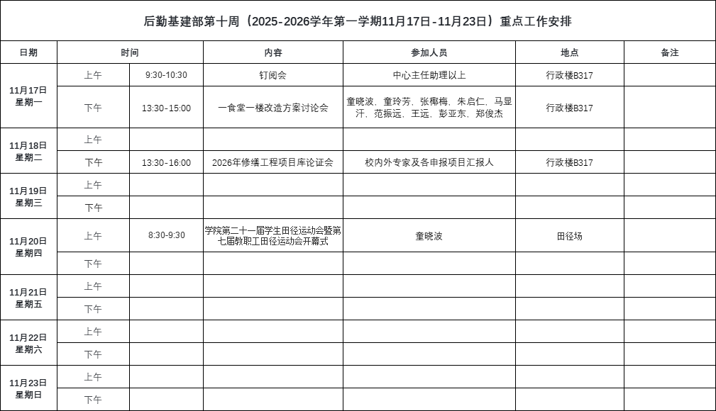 下一篇:后勤基建部第九周(2025-2026学年第一学期11月10日-11月16日)重点工作安排