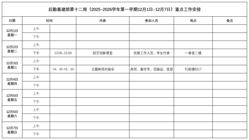 下一篇:后勤基建部第十一周(2025-2026学年第一学期11月24日-11月30日)重点工作安排