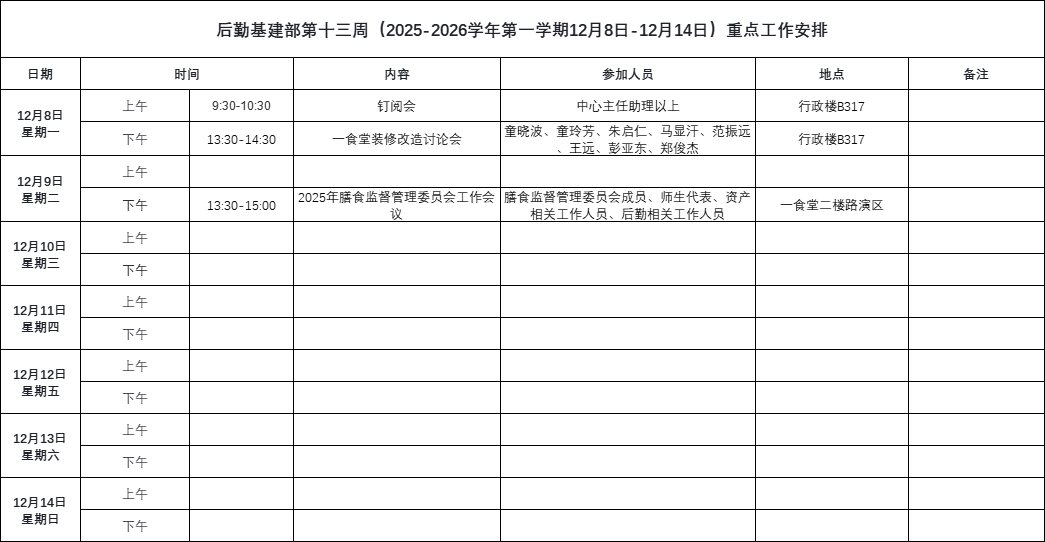 下一篇: 后勤基建部第十二周(2025-2026学年第一学期12月01日-12月07日)重点工作安排