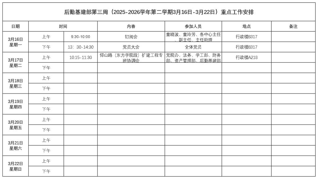下一篇:后勤基建部第二周(2025-2026学年第二学期3月9日-3月15日)重点工作安排