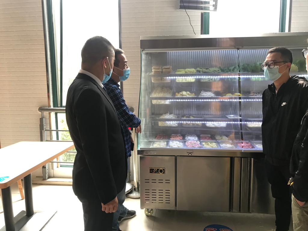监控人员对一食堂一餐厅、二餐厅、笨笨熊美食城等食品加工现场清洁、消杀、通风情况和食堂工作人员卫生进行了现场检查;检查中了解到,饮食服务中心自疫情发生以来就暂停进口冷链食品的采购;并对冷链产品做出具体规定,如要求具备冷链配送条件供货商做好冷链车消毒记录,提供原料料产地追溯资料、检验合格证等台账。在对美食城档口检查中,监控人员发现6号档口有国外进口的巴沙鱼块,但进货时间为《提示》发布前采购,相关索证索票齐全。请师生们放心食用。