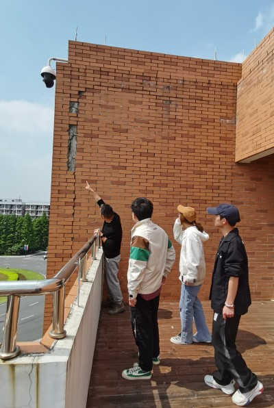 为保障师生教学环境的安全,学生代表随同监控小组针对教学楼、实验楼的消防设备、照明设备、卫生设施等进行了细致、全面的检查,重点排查每栋楼宇的外墙情况,排除安全隐患。从现场看,各项修缮工作有序进行,安全保障落实到位。