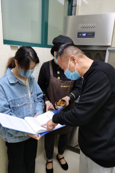 学生代表就食堂相关细则和标准与监控小组成员进行深入交流,共同参观餐具清洗间、蔬菜加工间、肉类洗切间、主食储存间、仓库等场所,并对后厨卫生、留样菜、从业人员操作规范进行了检查。经检查各餐厅总体上环境卫生良好,食品采购储存和留样菜等各方面符合相关规范,严格遵守食品安全标准。