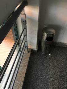4教3楼楼梯垃圾桶外有垃圾未及时清理