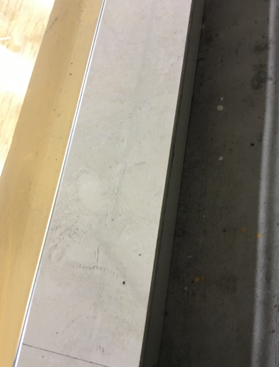 体育馆二楼走廊扶手下地砖灰尘较厚