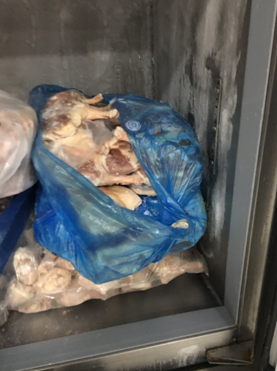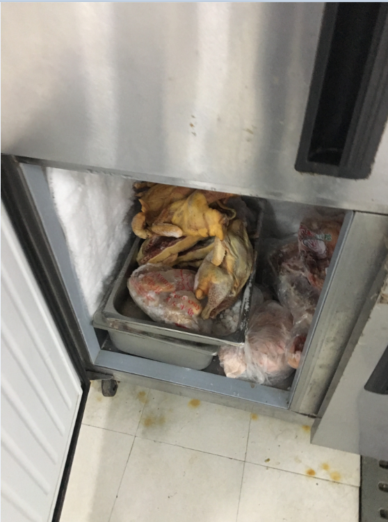 学术餐厅冰箱部分鸡肉未加保鲜膜