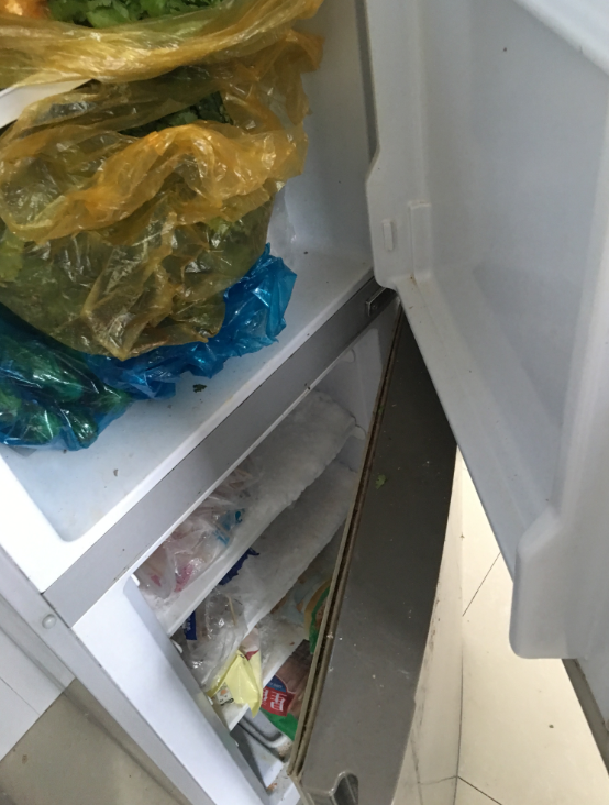 二食堂档口冰箱存放杂乱,卫生较差