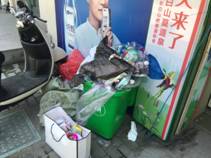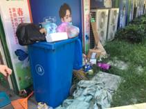 校内超市门口垃圾溢出垃圾桶,脏乱