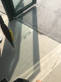 二食堂美食城南门口台面地砖下沉,进门口多处地砖存在缺口,易绊脚,有安全隐患,需及时修复