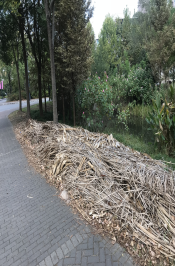 宿舍区河边植物枯枝枯叶未清理。