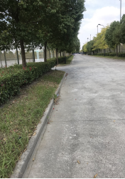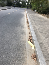 7-9号宿舍楼东面道路上落叶垃圾未扫干净。