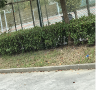 操场周边道路及绿化带内的落叶、塑料瓶等垃圾未按规定及时清理。