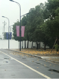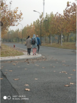 体育馆西面主干道落叶多。