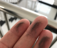 体育馆楼梯扶手积灰较厚。