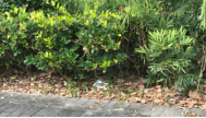 体育场周边绿化带内塑料瓶、白色垃圾未清理。