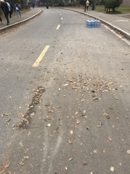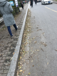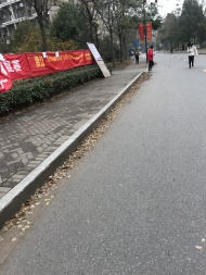 宿舍区道路落叶较多、较厚,人行道须清扫。