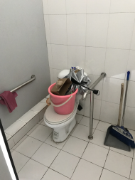 1教2楼和3楼无障碍卫生间内摆放杂物,影响卫生间正常使用。