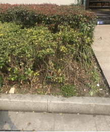 笨笨熊欢乐餐厅南门口绿化带和东面绿化带内竹签、包装纸较多。