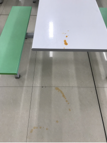2日中午,一食堂一楼保洁员在免费汤窗口窜岗聊天(超过10分钟)。聊天过程中保洁阿姨和2名窗口工作人员均未佩戴卫生口罩。 同时发现餐厅最少有7张无人的空桌上存在油渍、污物未被及时清洁,进门处地面油渍、垃圾也未及时处理。