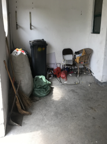 12号学生宿舍楼下垃圾集中区杂物较多,配电房门口杂物也需及时清理。