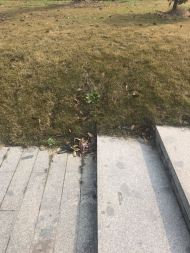 图书馆背面湖边台阶、草坪上的垃圾需要及时清理。